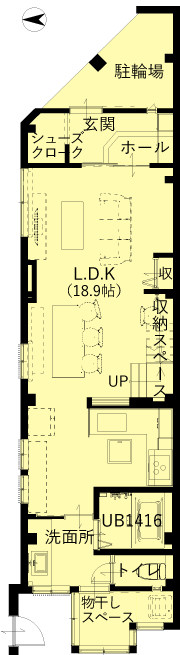 1Fの一部を駐輪スペースに。屋根があるので雨天でも濡れなくて安心です!