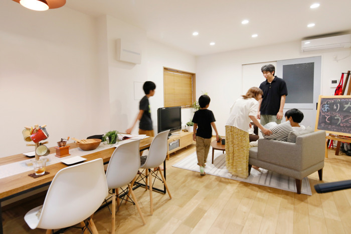 床下の空間を確保し、床・壁にしっかり断熱材を入れ、無垢フローリングを取り入れることで、暖かいLDKを実現しました!