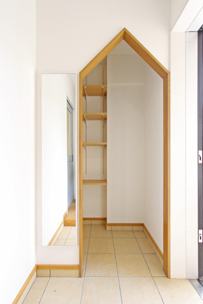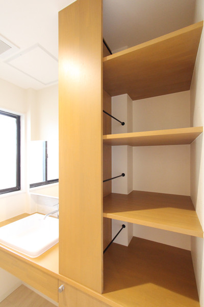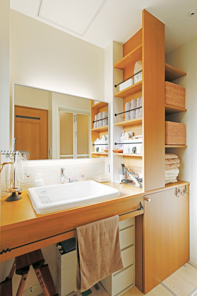 奥には小物をしまえる棚を設け、空間を有効活用。