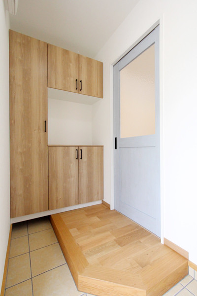 【玄関】今までなかった玄関を設け、家族みんなが靴を脱ぎやすくなりました!