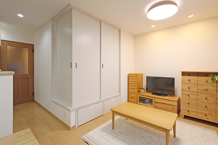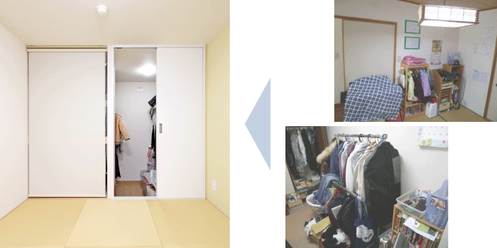 和室空間は少し小さくなりましたが、収納からはみ出していたたくさんの荷物を収納でき、お部屋がすっきり!