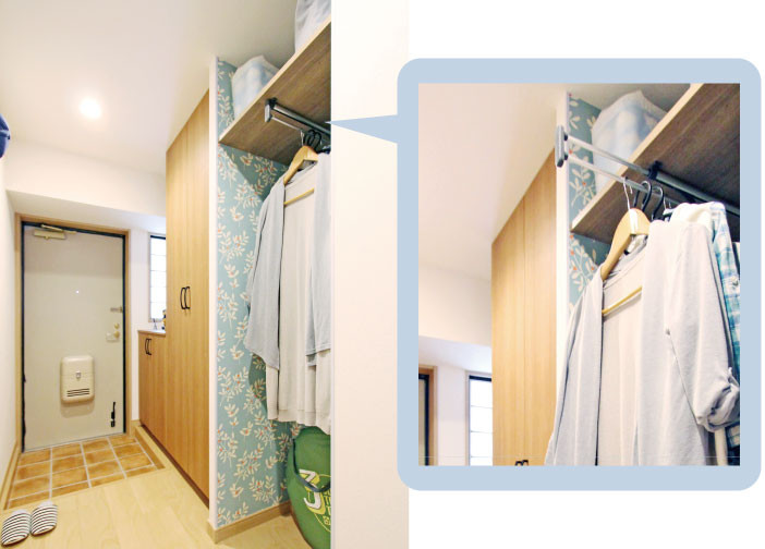 帰宅後に上着をリビングや部屋に持ち込むことなくかけておけます。