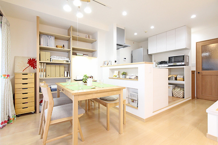 キッチンの位置を変えたことでダイニングテーブルを配置できるようになりました。