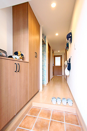 天井まである玄関収納を採用したことで、玄関にあふれていた靴が全て収納できました。