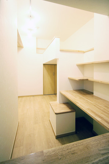 また可動できる棚も造作し、小物をオシャレに飾れます。