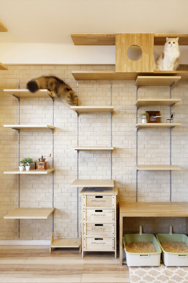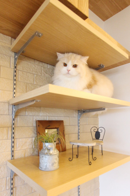 猫は、LDKと寝室を繋いでいるくぐり戸を使ったり、キャットウォークで遊んだりと家中を元気に走り回っています!時々泊りに来る息子も喜んでいます。
