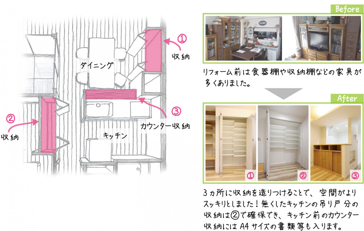 LDKが広くなり、収納スペースも増えたので部屋がすっきりしました!