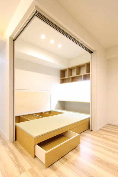 畳下を有効活用し、収納スペースを設けました。布団などが収納可能に!