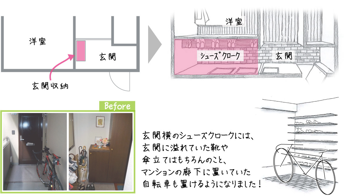 ・玄関まわりに物が多く片付ける場所が無い。