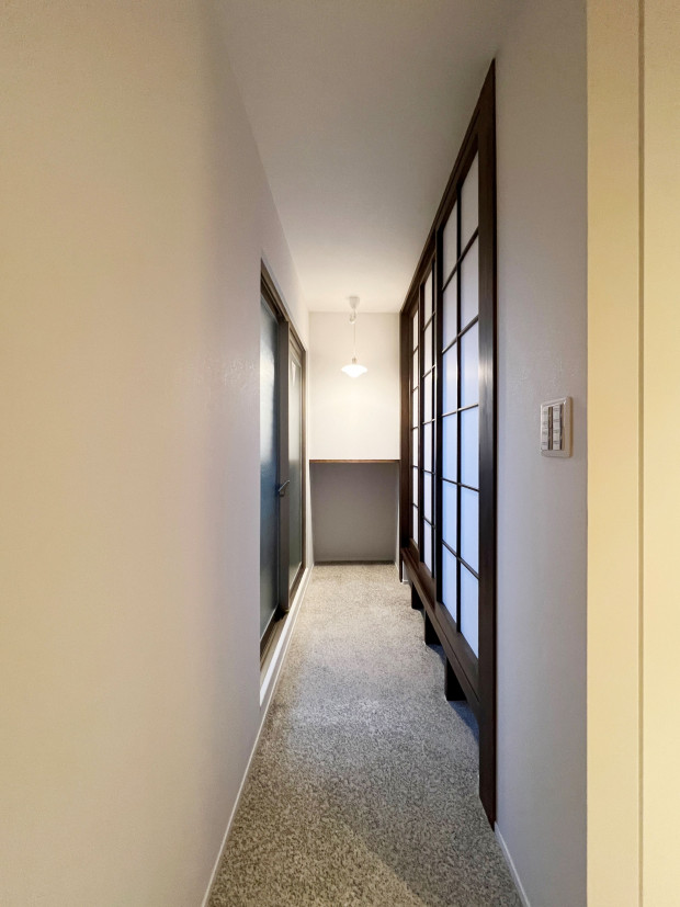来客時には宿泊可能なゲストルームともなり、縁側との緩衝空間として機能しています。