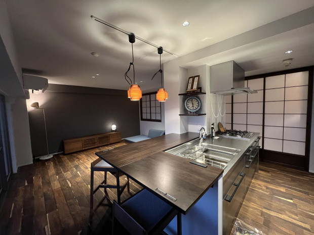 クローズドであったキッチンを90度向きを変えオープンキッチンとし、お二人暮らしの