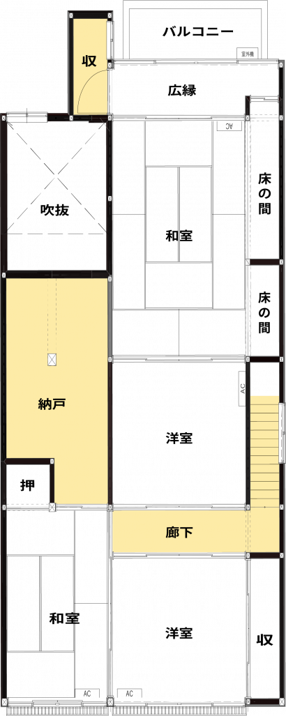 ・階段へのアクセスが居間からなので、動線がぶつかる。