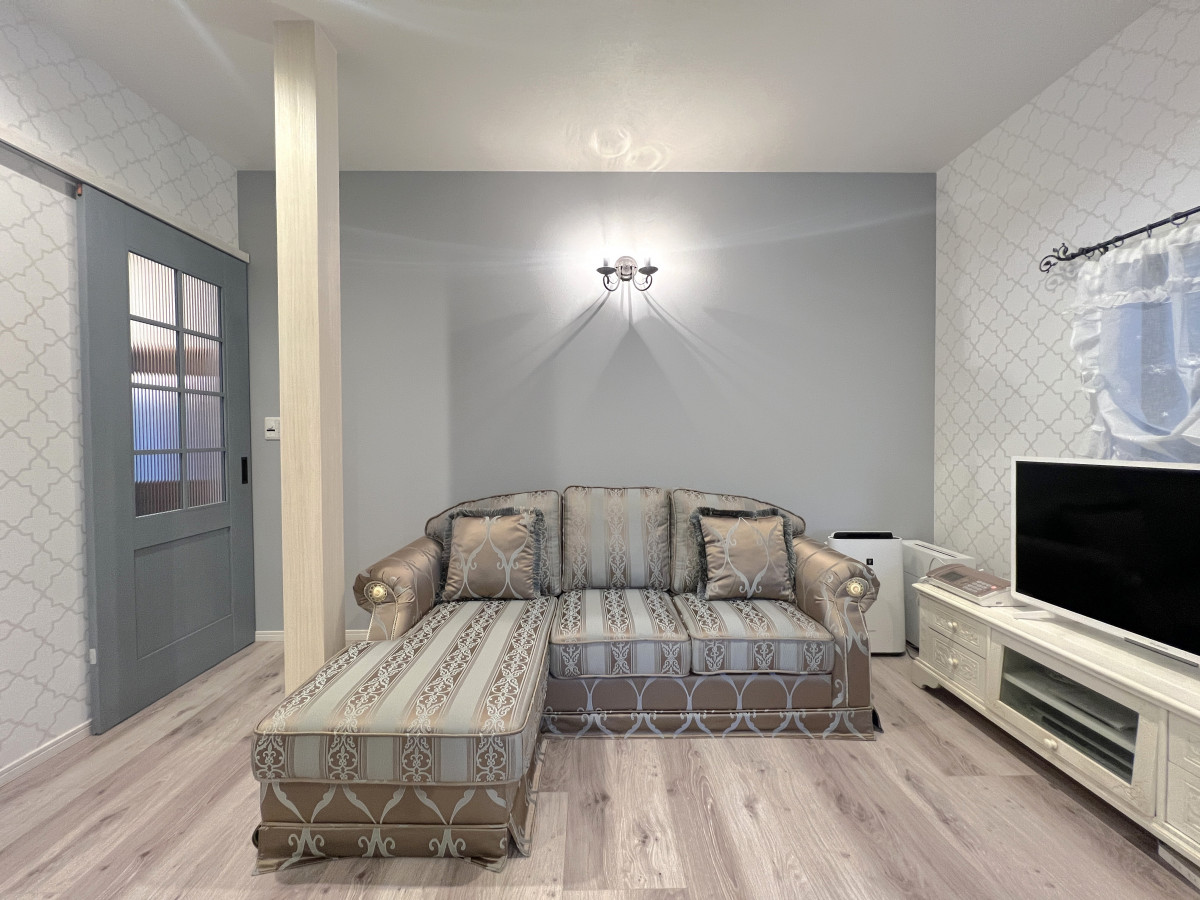 各居室にも随所にアクセントクロスを施工し、H様の好きが詰まった特別な空間に!