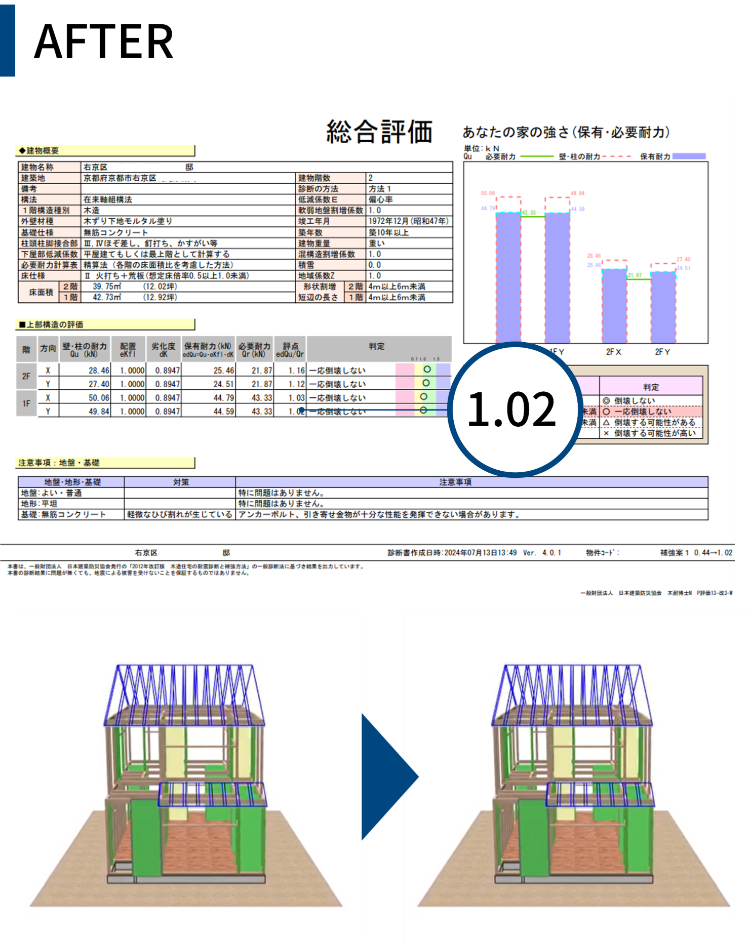 耐震評点1.0まで耐震補強を無料で行っております(1階部分のみ)
