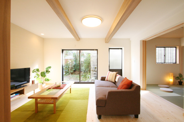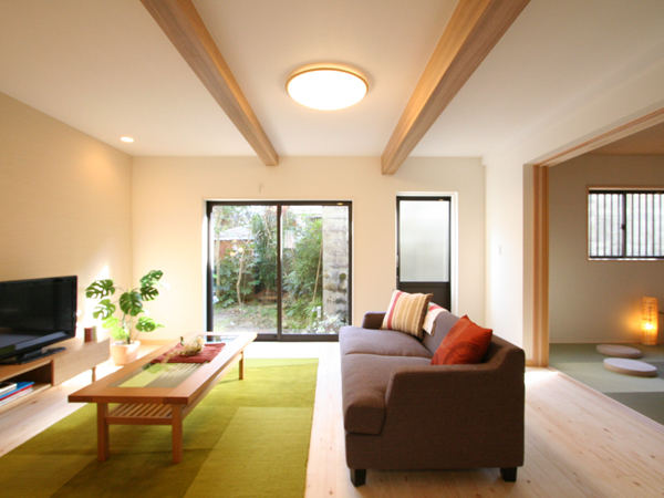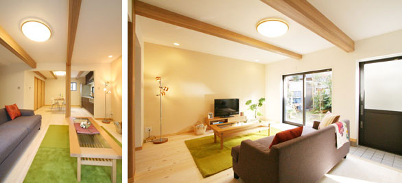 バリアフリーが溶け込んだ、無垢の床に光が注ぐ快適二世帯住宅。