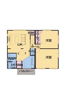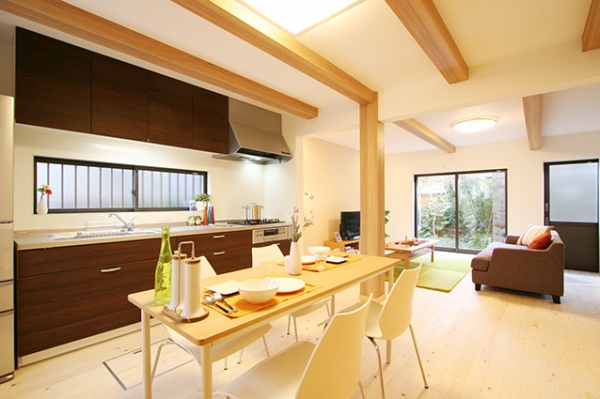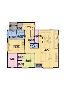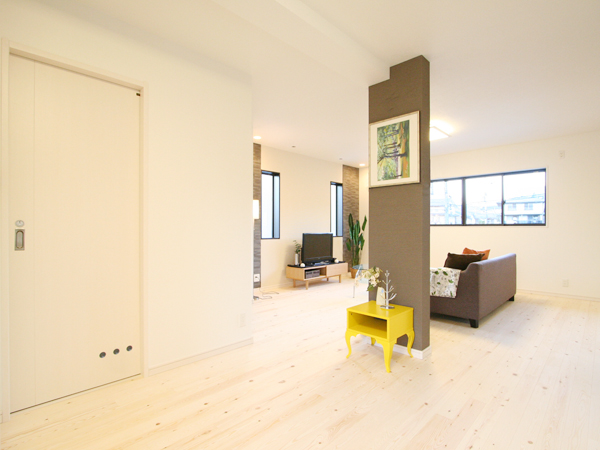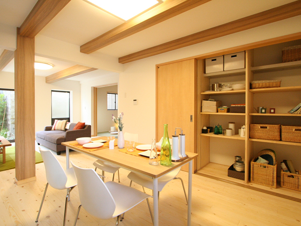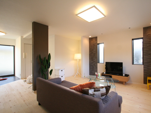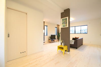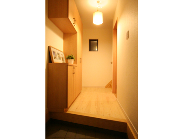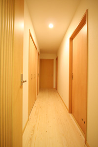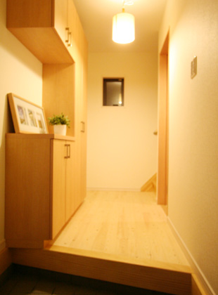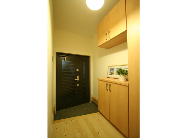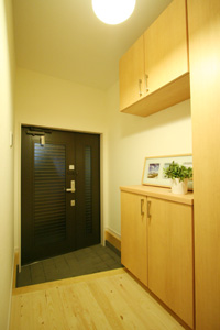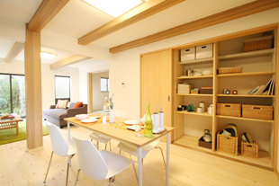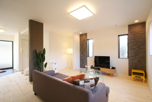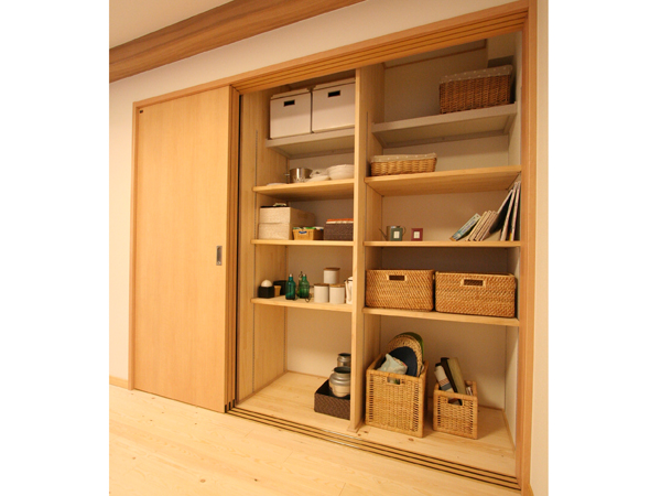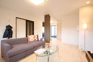 今回は2世帯住宅ということで、お互いが気兼ねなく生活できるように、世帯ごとに水廻りがある完全分離型を採用。家全体のバリアフリーを考え、家の中でのご家族の普段の行動範囲を伺い、動線を短くした間取りを提案致しました。また、各部屋にはその部屋に合った収納を造作し、スッキリした快適な空間に。