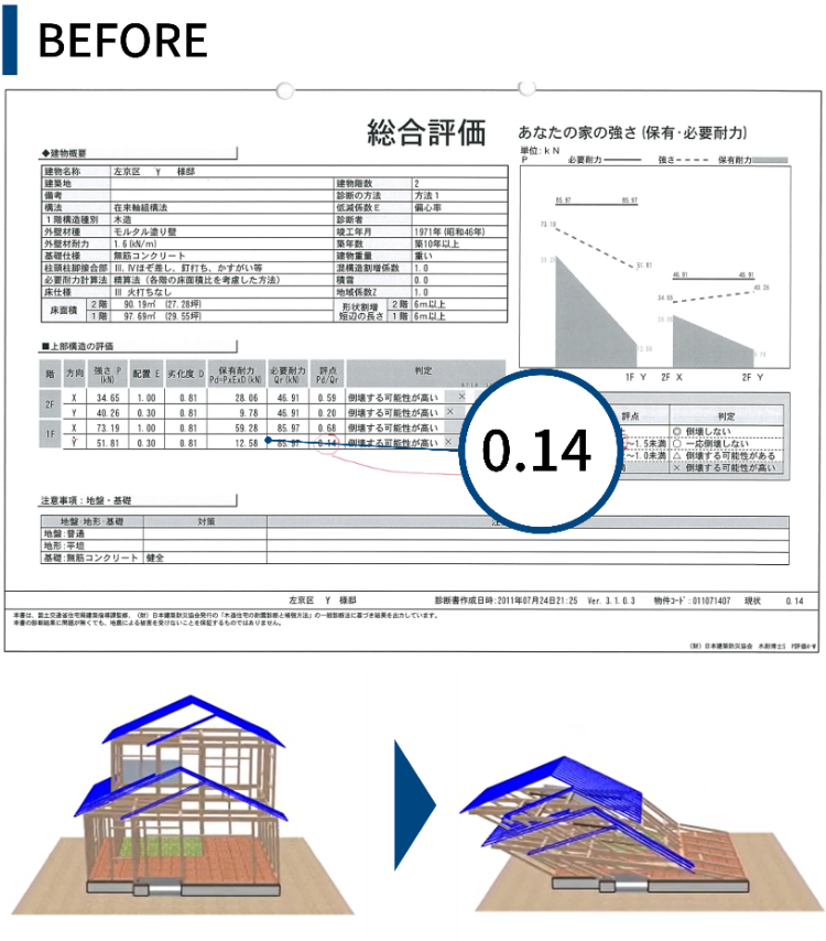 一度増築されていた為、たくさん段差があり、腰の悪いお母様には負担のかかるお家でした。また、店舗併用住宅だった為、1階にはリビングダイニングなど家族の集まれる空間もなく、2階も部屋が細かく区切られ住みにくい間取りでした。