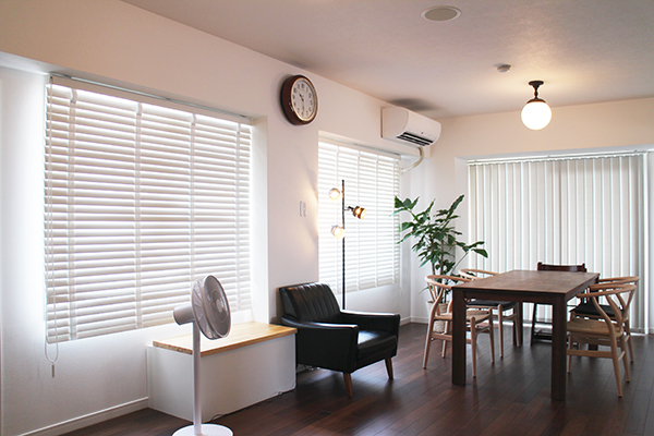 以前は日除けのために厚手のカーテンをつけて暑さを防いでいたのですが、提案頂いたインナーサッシと遮光性のあるブラインドのおかげで、快適に過ごせるようになりました。また白のインナーサッシなので、お気に入りのすっきりしたインテリアになり楽しんで暮らしています。