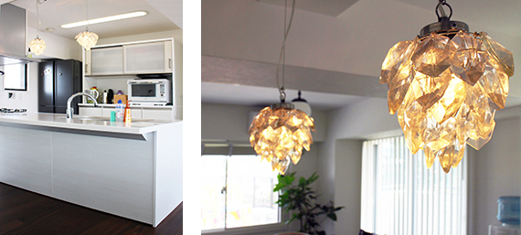 【照明】奥様がこだわってセレクトされた、キッチン前の照明。毎日のお料理が楽しくなります。