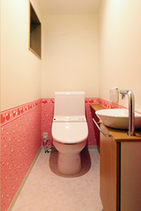 ■施工内容 /キッチン:LIXIL アミィⅠ型2400/UB:TOTO サザナ1216サイズ/トイレ:TOTO ZJ/洗面化粧台:TOTO オクターブW750/床:フローリング、クッションフロア―、畳(寝室)/壁:クロス、エコカラット貼り(玄関)/天井:クロス/収納、カウンター造作/梯子取付け/窓新設(ペアガラス)/梁塗装/外壁塗装/屋根工事/外構工事/防蟻工事/