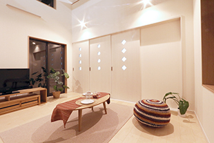 【リビングダイニング】吹き抜けにし、開放的なリビングダイニングを演出。