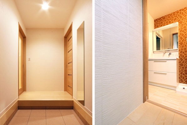 玄関には調湿効果・消臭効果のあるエコカラットを貼り、空間をきれいに保つことができます。