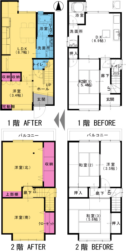 (写真左)玄関が狭く暗いとお困りでしたので階段を掛け替えてホールを設けました。