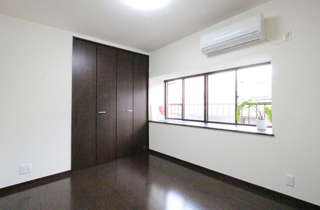 寝室は落ち着いた色目でご提案。収納もたっぷり確保しました。