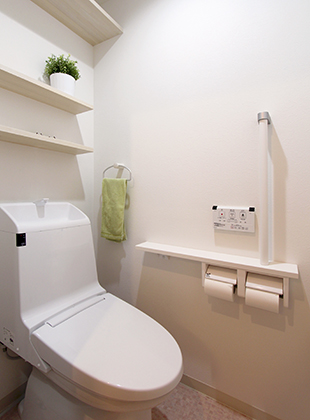 【トイレ】室内にトイレを設け、快適に。段差もなくなり、寒さも解消されました。収納を兼ねた飾り棚に小物も飾れます。
