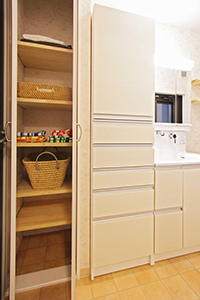 以前はキッチンの後ろが狭く、主人と場所を譲り合ったりしていてましたが、間取り変更ししたことで使いやすく、家事動線にも無駄がなくなりました。また、断熱材を入れて頂いたことで寒さ・暑さを改善でき、嬉しく思います。