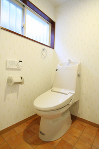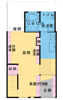 ■施工内容/キッチン:INAX I600 I型1800/UB:INAX ラバス 1216/トイレ:INAX アメージュV/全部屋(洗面除):床:無垢パインフローリング/天井壁:クロス/洗面所床:CF/1階・2階:本棚造作/