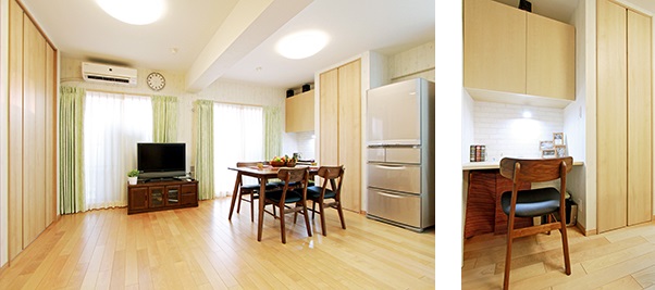 元々カーペットの床からフローリングへの施工がマンションの管理組合から許可が出たのがきっかけで、 部屋を広く使えるようリフォームしたいと思いました。