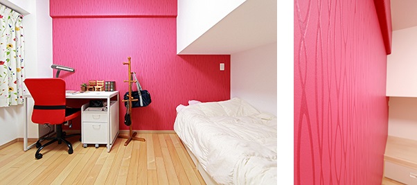 【洋室】ピンクのアクセントクロスが可愛らしい娘様のお部屋。