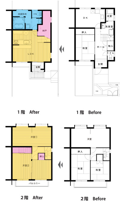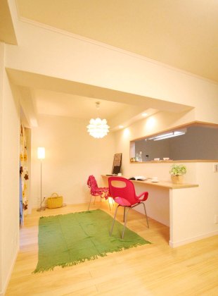 RC造りのテラスハウスで窓が少なく、また家族が集まれる場所にしたいということでしたので、「明るい」「温かい」をテーマに今回提案させていただきました。 間仕切壁は出来る限り取り払い、窓からの「明かり」を最大限に取り入れ、内装も自然素材の珪藻土、無垢のパインフローリングを使用することで「温かさ」を演出。 光と自然素材が織り成す温もりのナチュラル空間になりました。 工事後も「前よりも気持ちのいい空間になりました」と言っていただき、大変嬉しく思っております。 工事ありがとうございました。