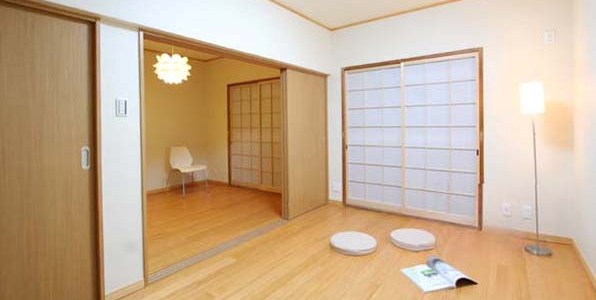 以前和室だったところにパインの無垢材フローリングを張ることで温もりのナチュラル空間に変身しました。