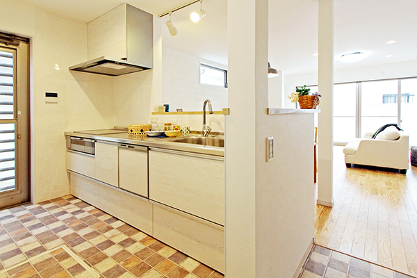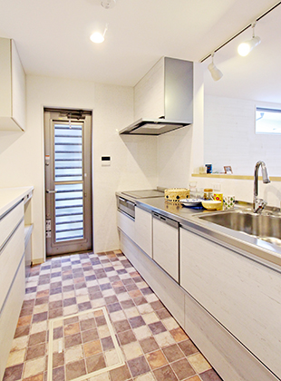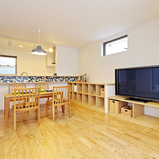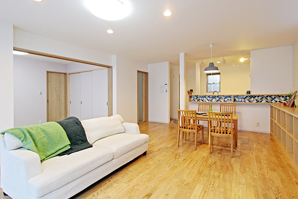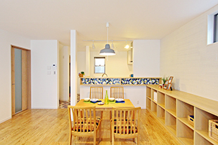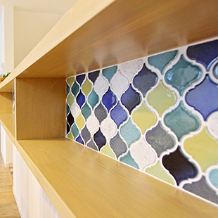 モザイクタイルを貼り、LDKのポイントとして空間を彩ります。