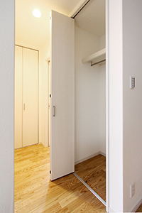 掃除道具など隠しておきたいものは扉付き収納に。