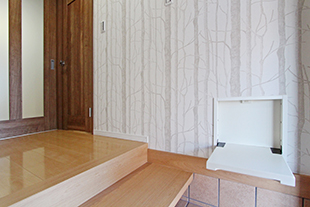 奥様が使いやすいよう、式台や格納椅子設けました。