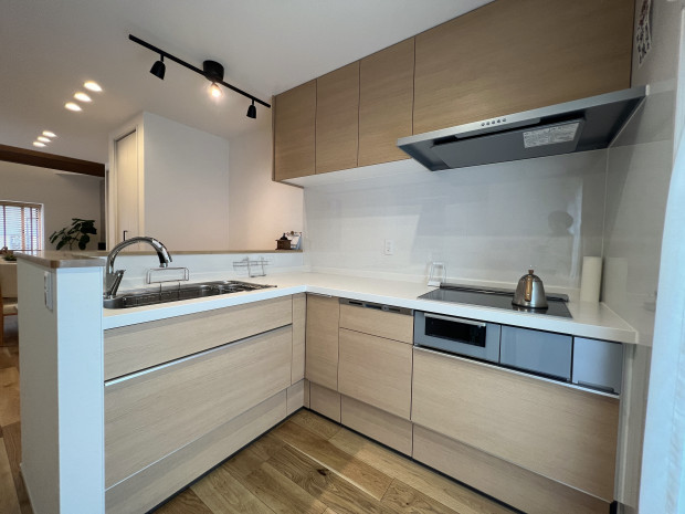 また、L型のキッチンを導入しダイニングとリビングを広く活用できるよう配慮しました。